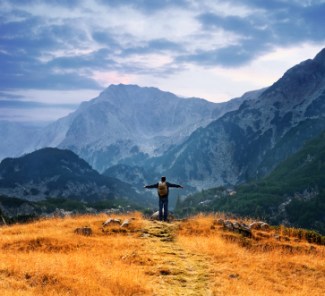 What: He’s standing, looking out over the ravine