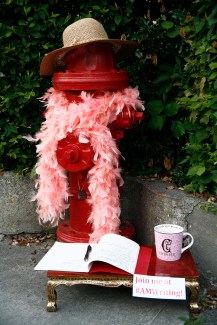 I’ve introduced #AMWriting to others, too. Meet Frankie the Fire Hydrant. She’s a cute little fixture in our town. She lives across the street from me where tourists often stop to take her picture. She loves to pose and has a hot sense of humor. Usually she wears a plaid scarf around her ample neck to protect her from our drizzly NW days. But in celebration of #AMWriting’s two-year anniversary, Frankie’s decided to doll up and join us for a day of writing. We hope you join us too. See you at #AMWriting!