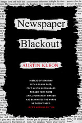 Kleon discovered newspaper blackout when he was stuck on his writing. He picked up some newspapers lying beside his desk and started marking out words. In his book, Kleon shows examples of newspaper blackout poetry and explains the “20-year history of folks finding poetry in the newspaper,” then goes on to explain how to do it yourself.